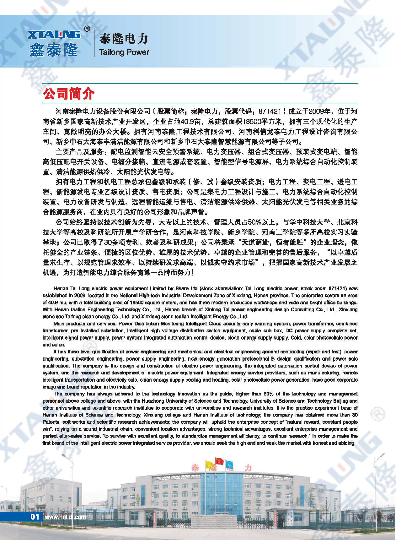 河南泰隆電力設備有限公司成立于2009年1月7日,位于河南省新鄉(xiāng)國家高新技術開發(fā)區(qū)。企業(yè)面積22400平方米(33.6畝),總建筑面積18500平方米,是集電力設備研發(fā)、制造和銷售的現(xiàn)代化科技型企業(yè)。主要研發(fā)生產:智能預裝式變電站、開關柜、組合式變壓器、電力變壓器電纜分接箱、直流電源成套裝置、智能型信號電源屏和電力系統(tǒng)綜合自動化控制裝置?,F(xiàn)公司已經發(fā)展成為一個擁有自主研發(fā)、生產制造、產品銷售...